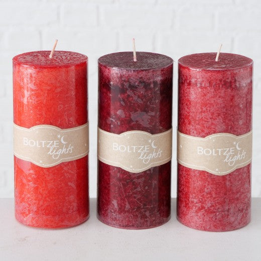 Grande Bougie Pilier Voile Rouge, Modèles Assortis, Ø7xH15 cm