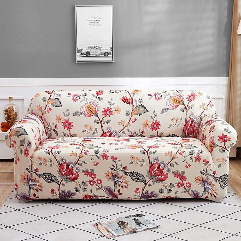Housse de canapé élastique + 1 taie d'oreiller, Fleurs A022, Multicolore