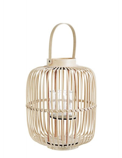 Lanterne décorative en bambou et verre Merille Small Natural, Ø24xH33 cm