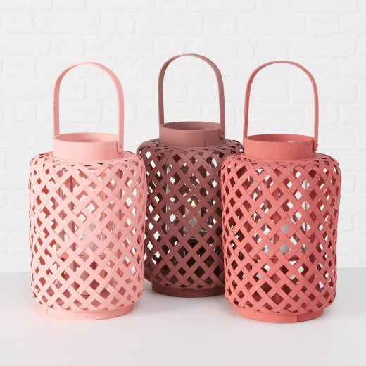 Lanterne décorative en bambou Colonnes roses, Modèles assortis, Ø20xH30 cm