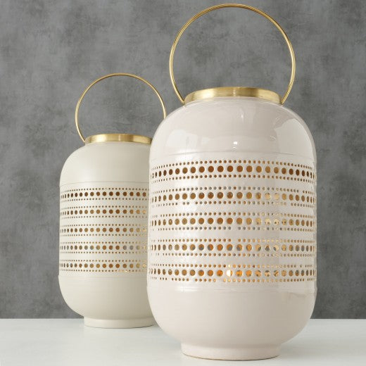 Lanterne Décorative Viseo Beige / Verre Brique, Modèles Assortis, Ø20xH26 cm