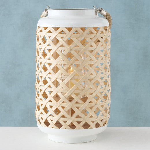 Lanterne décorative en métal et bambou Carole Naturel / Blanc, Ø22xH39 cm