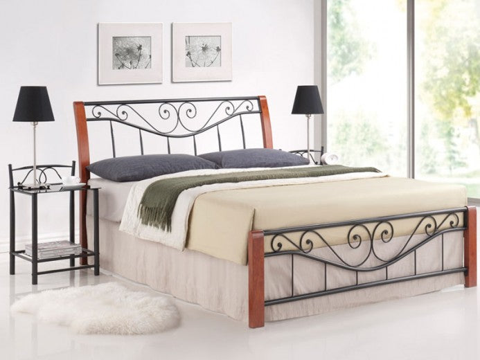 Lit en métal noir avec inserts en bois de cerisier Cortina, 160 x 200 cm