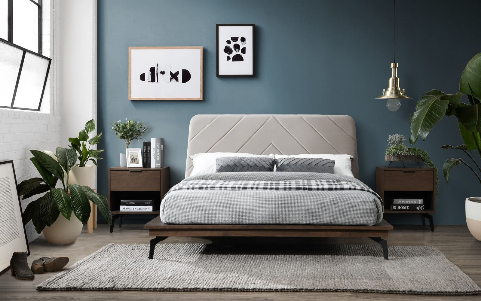 Lit en bois et rembourré avec Louisa Bordeaux / Noyer-200 x 180 cm