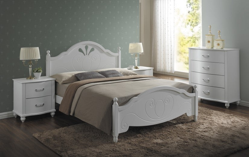 Lit en bois et MDF Malta Blanc, 160 x 200 cm
