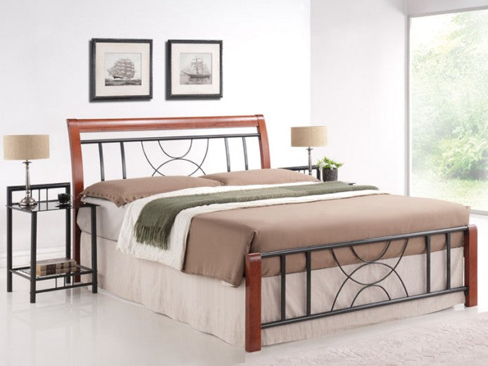 Lit en métal noir avec insert en bois Veronica cerise noire