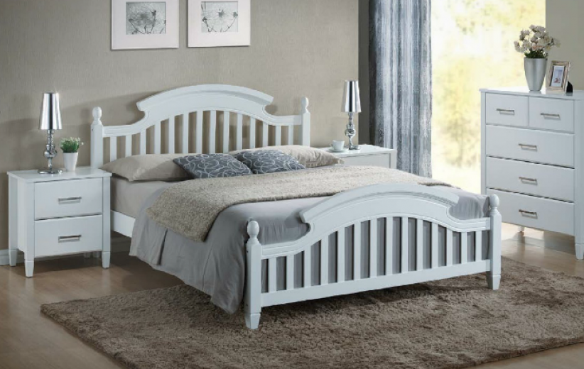 Lit en bois massif et MDF Lisabona Blanc, 140 x 200 cm