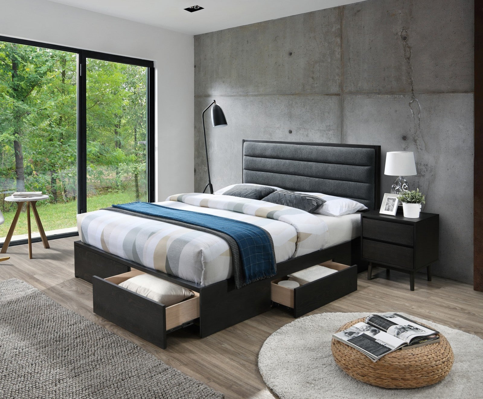 Lit en placage, recouvert de tissu et 2 tiroirs, Diva, Anthracite