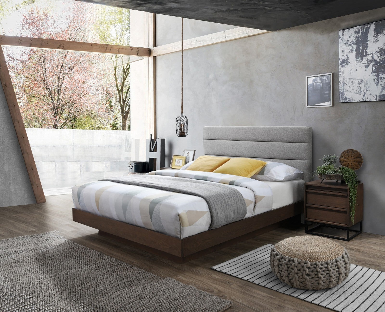 Lit en placage et recouvert de tissu, Ryo, Gris Clair