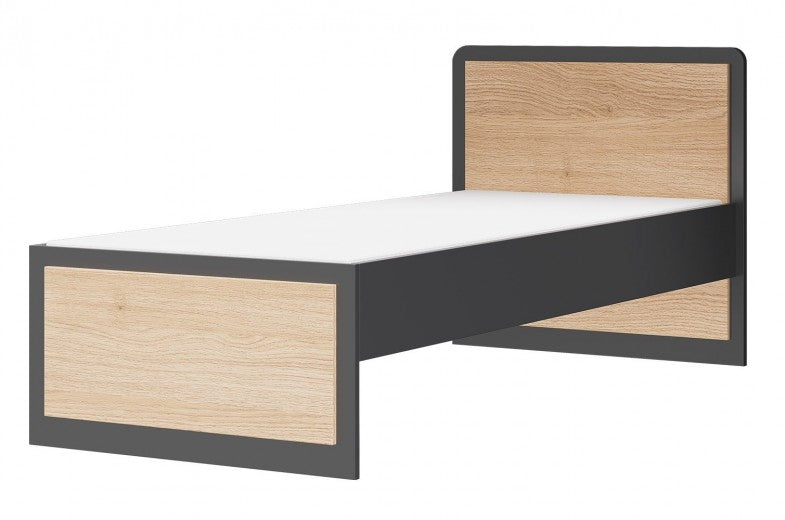 Lit en placage et aggloméré, recouvert de tissu Gris Velvet / Rustic Oak