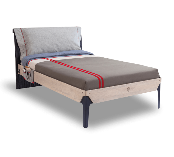 Lit palette avec tête de lit rembourrée pour jeunes, garçons 12-24 ans, Trio Natur / Dark Bleu-200 x 120 cm