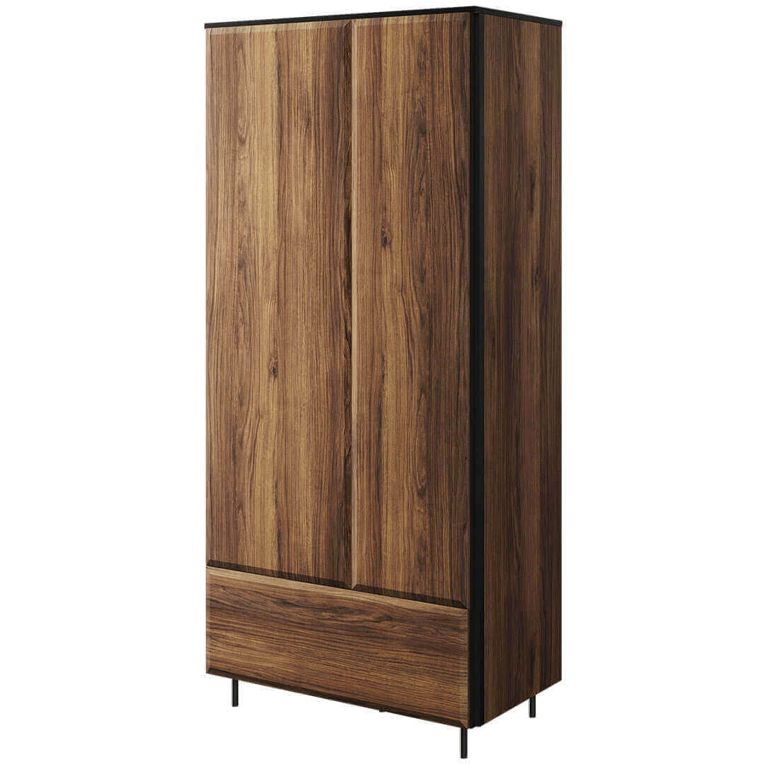 Armoire en bois, avec 2 portes et 1 tiroir, Borga 01, Chêne Catane / Noir, L90xW51xH197 cm