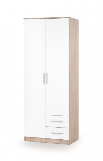 Armoire palette 2 portes et 2 tiroirs Lima S-2 Blanc / Chêne Sonoma, l80xA52xH205 cm