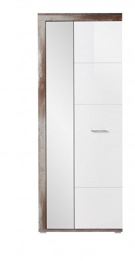 Armoire palette en aggloméré et MDF, avec miroir et 2 portes Krone Blanc / Natural, l77xA38xH202 cm