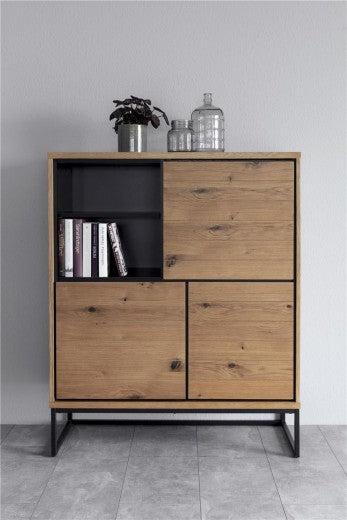 Armoire en placage et métal, avec 3 portes Chêne Dalarna / Noir, l102,2xA45xH124.7 cm