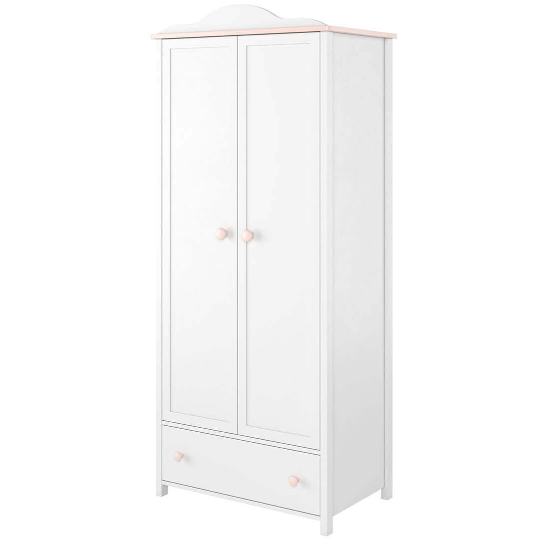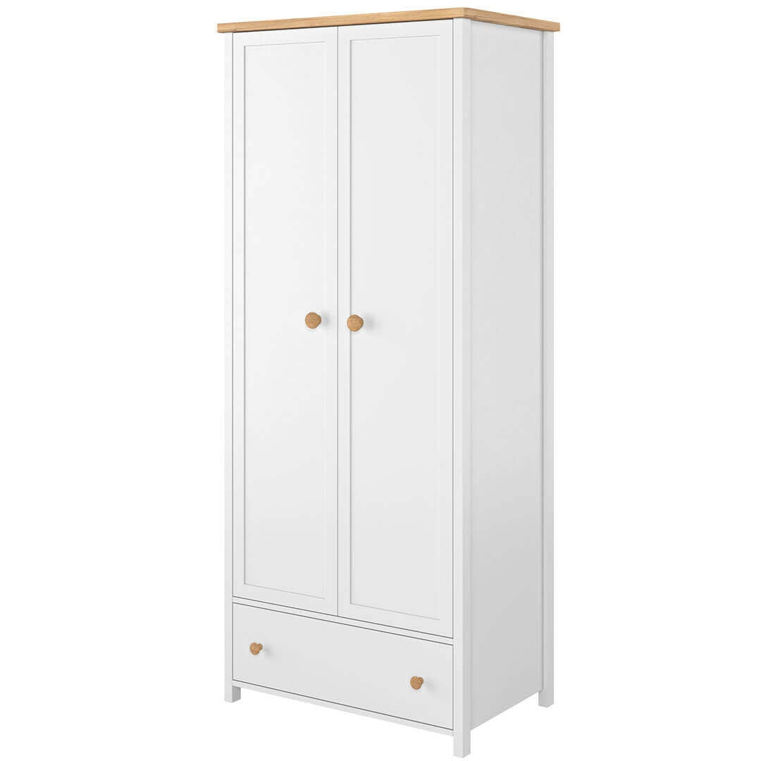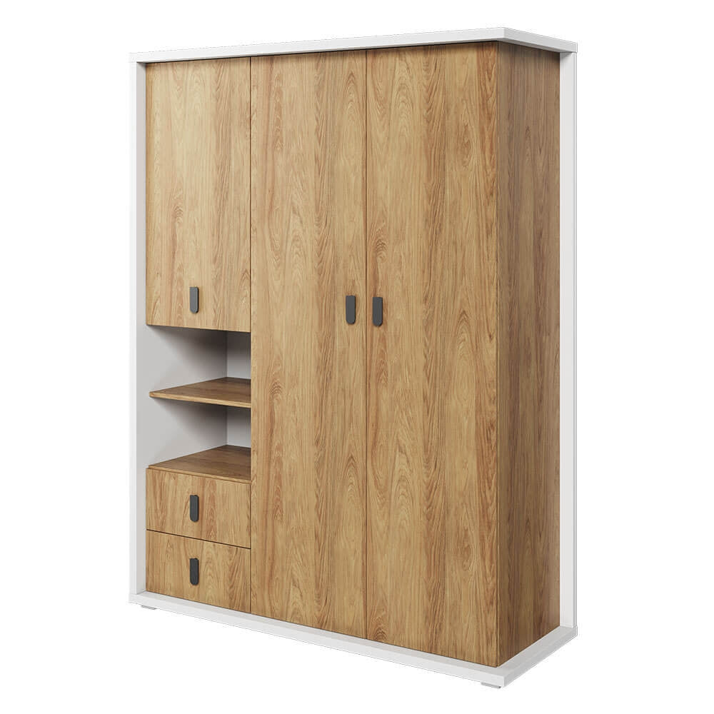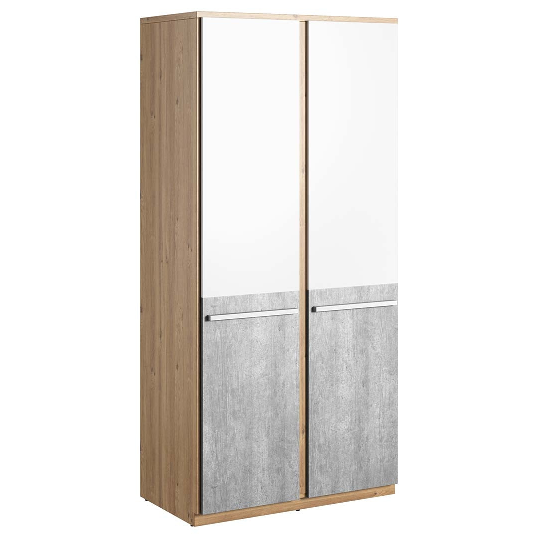 Armoire en bois clair avec 2 portes, pour enfants et jeunes, Plano 02, Chêne/Gris/Blanc, L90xW51xH191 cm