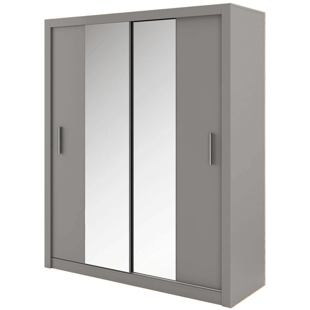 Armoire en bois clair, avec 2 portes coulissantes et miroir Arti 04, Gris Mat, L150xP60xH215 cm