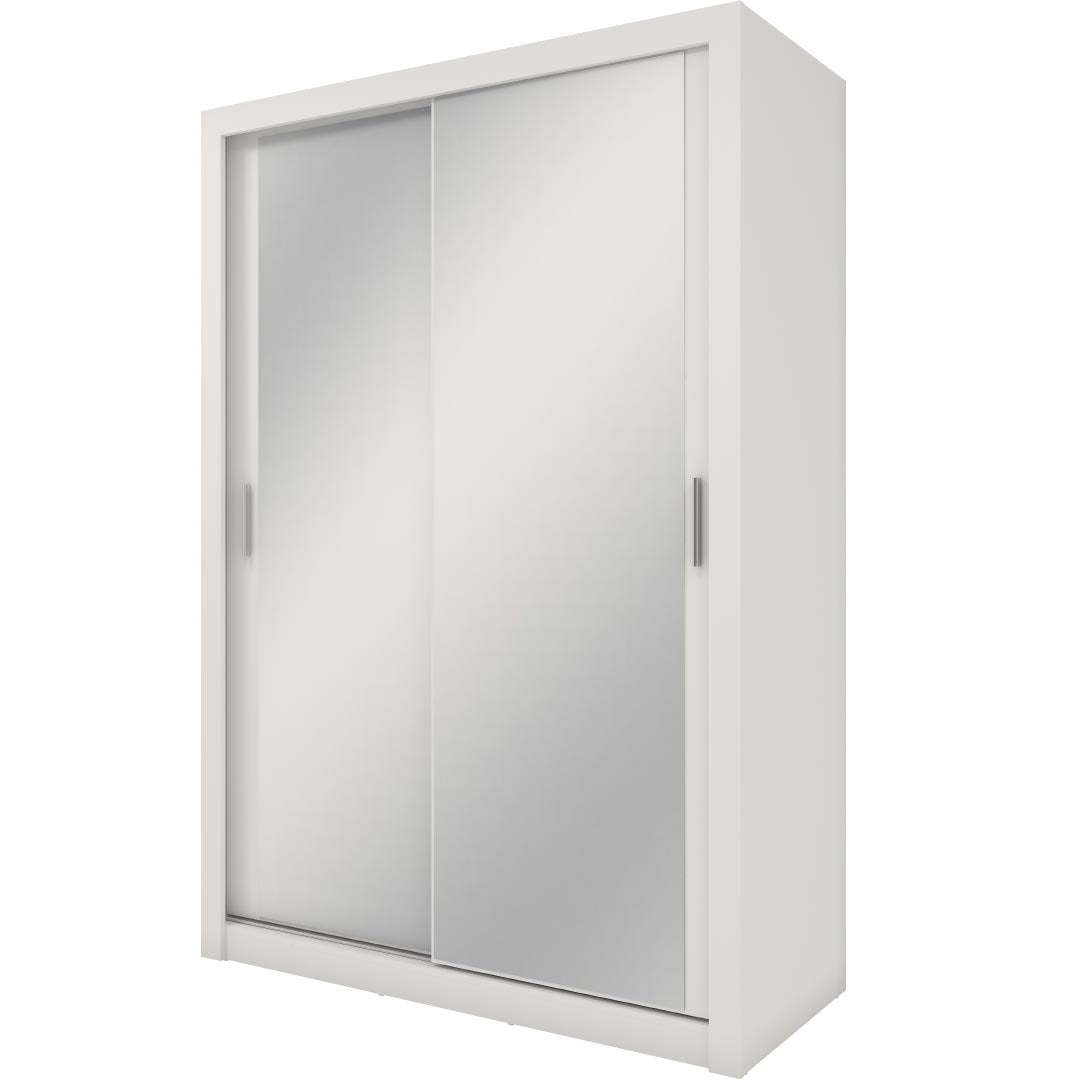 Armoire en bois clair avec 2 portes coulissantes et miroir Idea 18 Small, Blanc Mat, L120xH60xH215 cm