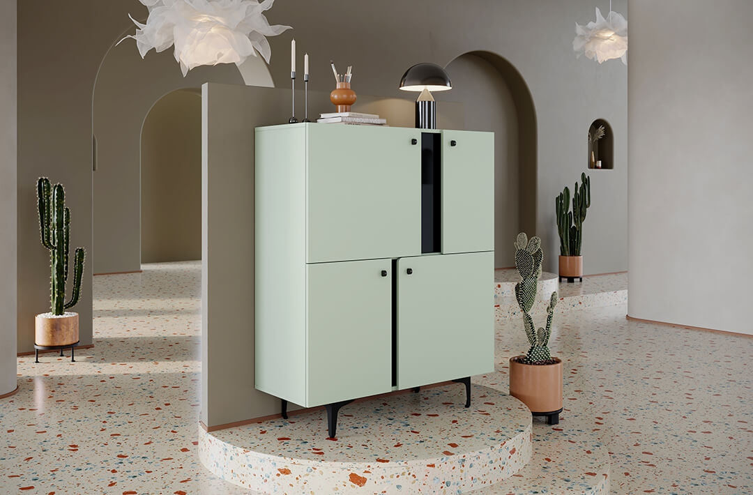 Armoire 4 portes en bois clair, Coloris CS 01, Vert Menthe / Noir, L105xl41xH127 cm