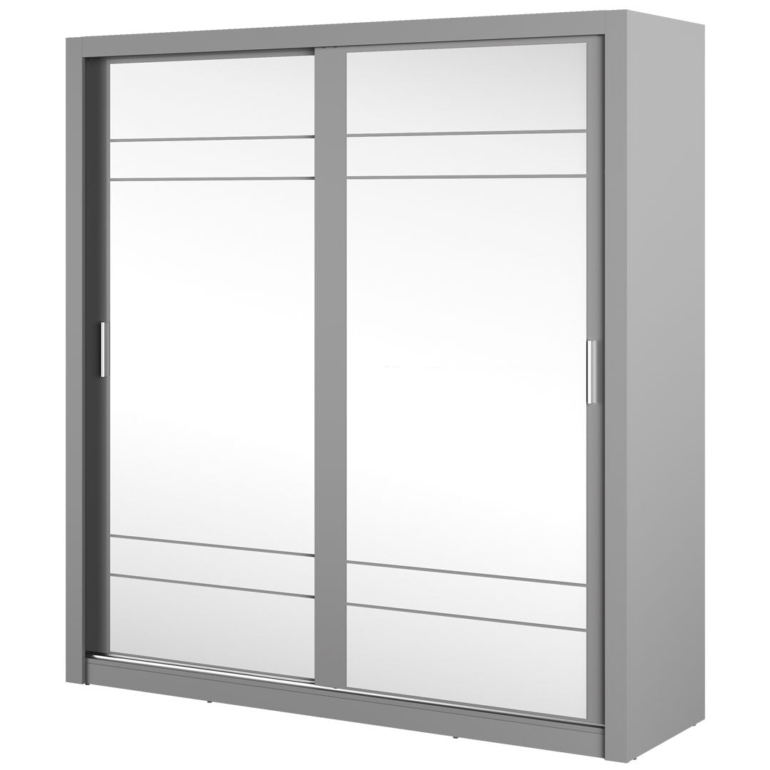 Armoire en bois clair, avec 2 portes coulissantes et miroir Arti 03, Gris Mat, L180xP60xH215 cm