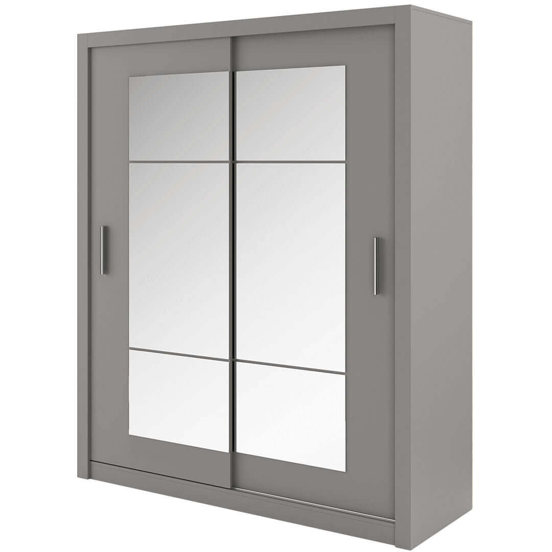 Armoire en bois clair avec 2 portes coulissantes et miroir Idea 17, Gris mat, L150xP60xH215 cm