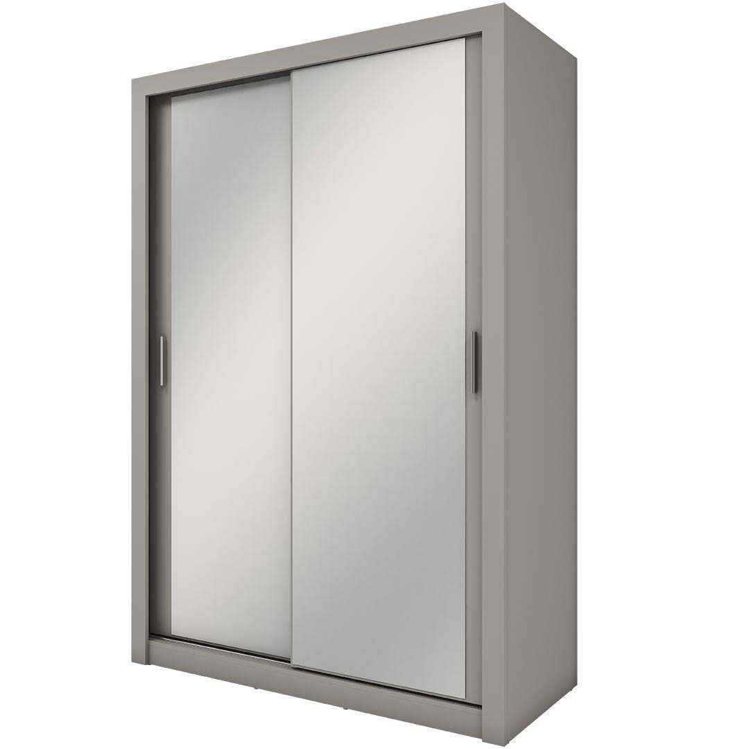 Armoire en bois clair, avec 2 portes coulissantes et miroir Arti 06, Gris Mat, L120xP60xH215 cm