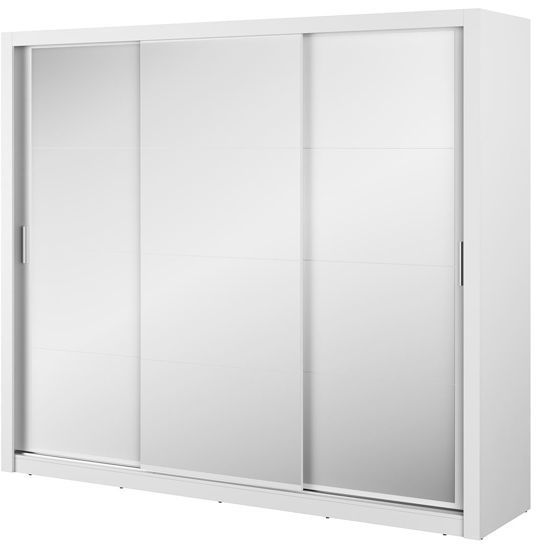 Armoire en bois clair avec 3 portes coulissantes et miroir Idea 01 Triple, Blanc Mat, L250xP60xH215 cm