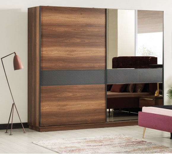Armoire avec miroir et 2 portes coulissantes Livorno 73 Chêne / Gris, l215xA60xH210 cm