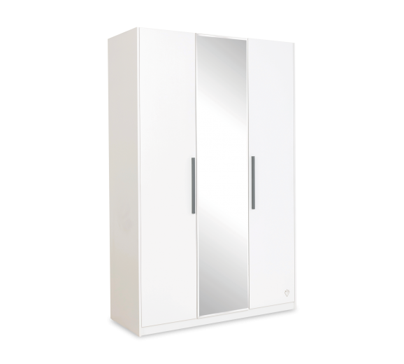 Armoire à palettes avec 3 portes et miroir, pour jeune blanc, l135xA54xH209 cm