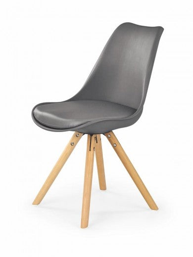 Chaise rembourrée en cuir écologique, avec pieds en bois K201 Gris, l48xA57xH81 m