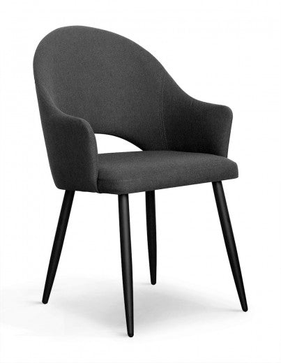 Chaise rembourrée en tissu, avec pieds en métal Goda Gris foncé / Noir, l54xA58xH87 cm