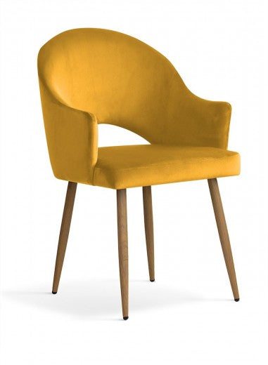 Chaise rembourrée en tissu, avec pieds en métal Goda Velours Moutarde / Chêne, l54xA58xH87 cm