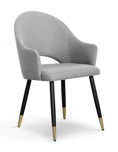 Chaise rembourrée en tissu, avec pieds en métal Goda Gris clair / Noir / Or, l54xA58xH87 cm