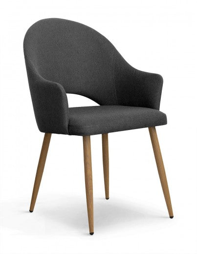 Chaise rembourrée en tissu, avec pieds en métal Goda Gris foncé / Chêne, l54xA58xH87 cm