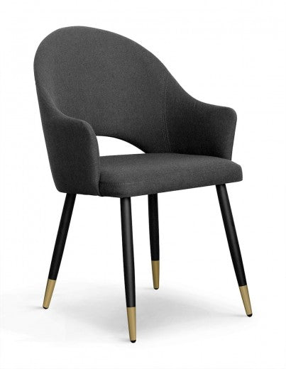 Chaise rembourrée en tissu, avec pieds en métal Goda Gris foncé / Noir / Or, l54xA58xH87 cm