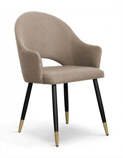Chaise rembourrée en tissu, avec pieds en métal Goda Beige / Noir / Or, l54xA58xH87 cm