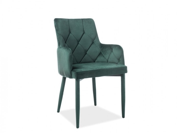 Chaise rembourrée en tissu, avec pieds en métal danois Velours Vert / Noir, l56xA60xH80 cm