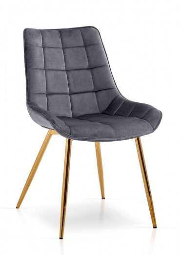 Chaise rembourrée en tissu avec pieds en métal Velours Kair Gris Foncé / Or, l53xA62xH84 cm