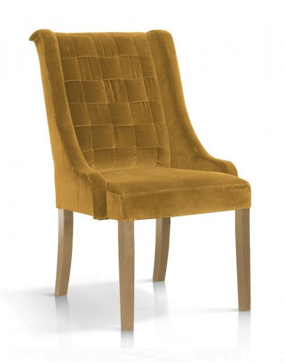 Chaise rembourrée en tissu, avec pieds en bois Prince Velours Jaune / Chêne, l55xA70xH105 cm