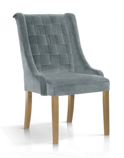 Chaise rembourrée en tissu, avec pieds en bois Prince Velours Gris / Chêne, l55xA70xH105 cm