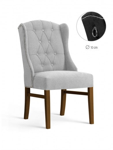 Chaise rembourrée en tissu avec pieds en bois Royal Light Gris / Noyer, l55xA74xH105 cm