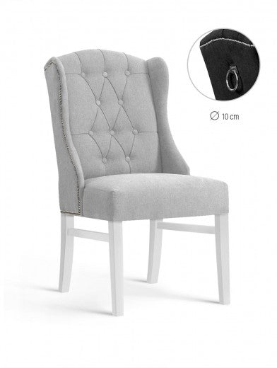 Chaise rembourrée en tissu, avec pieds en bois Prince Velours Gris / Blanc, l55xA70xH105 cm