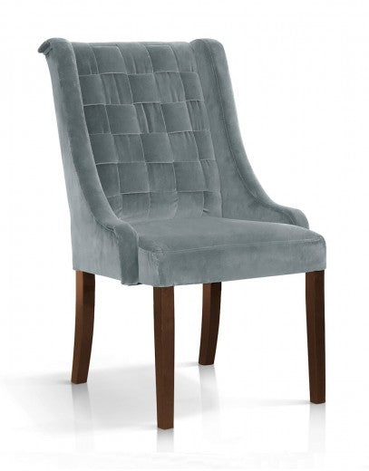 Chaise rembourrée en tissu, avec pieds en bois Prince Velours Gris / Noyer, l55xA70xH105 cm