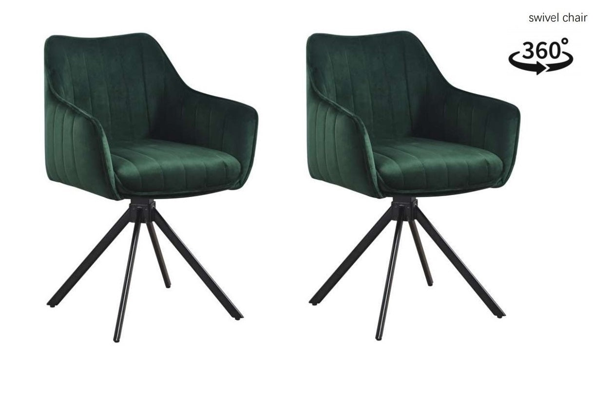 Lot de 2 chaises pivotantes recouvertes de tissu et pieds en métal, Alex, Velours Vert/Noir, L45xL59xH86 cm