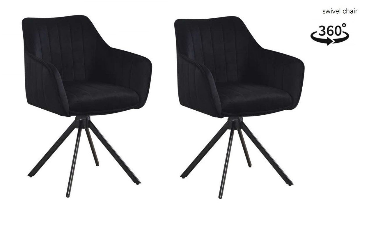 Lot de 2 chaises pivotantes recouvertes de tissu et pieds en métal, Amza, Velours Noir, L45xL59xH86 cm