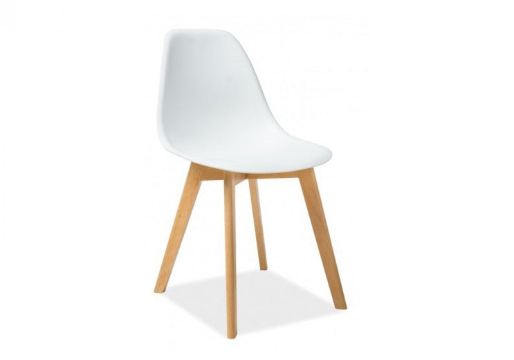 Chaise en plastique, avec pieds en bois Moris Blanc / Hêtre, l46xA38xH85 cm