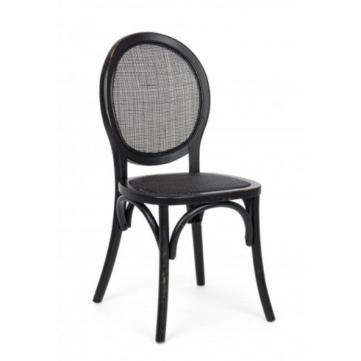 Chaise en bois d'orme, assise en rotin naturel Globo Noir, l45xA53xH93 cm