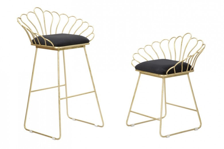 Chaise de bar rembourrée avec tissu et pieds en bois Paris Bleu / Argent, Ø35xH74 cm