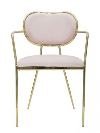 Fauteuil fixe tapissé de tissu et pieds en métal Velours Ramsey Rose Foncé / Laiton, l72XA67xH76 cm