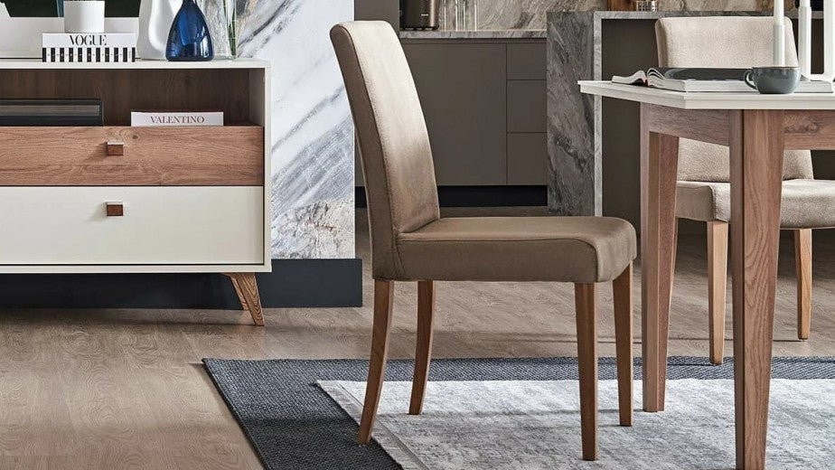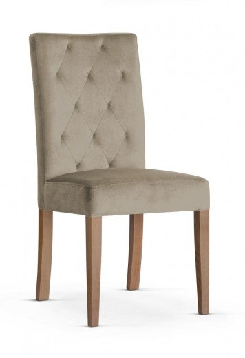 Chaise rembourrée avec tissu et pieds en bois Velours Orlando Beige / Chêne, l46xA60xH97 cm
